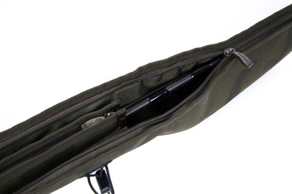 The peculiarity of the case is its adjustable edge with hooks that can vary its length depending on the length of your rod!