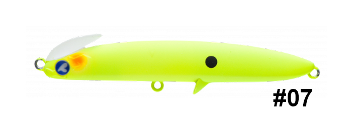 Η εταιρεία BlueBlue γνωρίζουμε οτι δεν επαναπαύεται και ολοένα κατασκευάζει ΝΕΑ-ΠΡΩΤΟΠΟΡΑ-ΚΑΙΝΟΤΟΜΑ προϊόντα διατηρώντας την Ιαπωνική ποιότητα, φινέτσα και αποτελεσματικότητα.Το ΝΕΟ της δημιούργημα ακούει στο όνομα FRID 90S. Πρόκειται για ένα καθαρόαιμο Sinking Pencil το οποίο όμως έχει ιδιαίτερα χαρακτηριστικά και σίγουρα παρόμοιο του δεν υπάρχει στην αγορά. Χαρακτηρίζεται από έντονη κίνηση Tail Dancing που σημαίνει πως κουνάει περισσότερο το πίσω μέρος του σώματος του.Κατασκευαστικά η BlueBlue έχει τοποθετήσει στο πάνω μέρος του κεφαλιού του κάτι σαν “σκουφάκι” θα λέγαμε, το οποίο σε συνδυασμό με ακόμη ένα “εξόγκωμα” που έχει τοποθετήσει στο κάτω μέρος του σώματος του δημιουργώντας αντίσταση στο νερό, βοηθούν το FRID με μια απλή σταθερή ανάκτηση να ανεβαίνει με ευκολία προς την επιφάνεια πραγματοποιώντας μια εξαιρετική κίνηση S μέσα στο νερό. Το μήκος του είναι 90mm, το βάρος του είναι 27 γραμμάρια και η πλευστότητα του Sinking.Χαρακτηρίζεται για τις εξαιρετικά μακρινές του ρίψεις. Εντύπωση προκαλεί το πλούσιο χρωματολόγιο του.