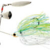 SPINNER BAITS από την Lucky John, αποτελεί μία κατηγορία τεχνητών δολωμάτων που δεν έχουν χρησιμοποιηθεί στην χώρα μας, στις δικές μας θάλασσες.Αρχικά να αναφέρουμε πως πρόκειται για μία κατηγορία τεχνητών δολωμάτων που έχουν κατασκευαστεί με στόχο ψάρια του γλυκού νερού όπως είναι η Τούρνα, οι Πέρκες και το μεγαλόστομο λαβράκι. Χρησιμοποιούνται όμως στο θαλασσινό νερό, από spinners σε ξένες χώρες, όπως η Ισπανία για παράδειγμα, με στόχο τα βραχόψαρα και την τεχνική του Rock Fishing με εξαιρετικά αποτελέσματα. Έτσι λοιπόν αποτελεί μία πρόκληση για εμάς τους ίδιους να το δοκιμάσουμε στα δικά μας νερά, στα δικά μας ψάρια και πιο συγκεκριμένα στο ψάρεμα του λαβρακιού. Πιο συγκεκριμένα πρόκειται για ένα τεχνητό δόλωμα που αποτελείται από δύο διαφορετικού σχήματος αλλά και χρησιμότητας spinner blades. Το ένα στριφογυρίζει γύρω γύρω από το ανοξείδωτο σύρμα στο οποίο είναι περασμένο, ενώ το δεύτερο είναι ενωμένο με ένα ειδικό στριφτάρι που του δίνει την δυνατότητα να περιστρέφεται. Ενεργοποιούνται κατά την διάρκεια της ανάκτησης με την αντίσταση του νερού. Στη συνέχεια το κάτω άκρο του σύρματος καταλήγει σε ένα τύπου Jighead το οποίο είναι εφοδιασμένο με ένα ισχυρό αγκίστρι. Το Jighead είναι “ντυμένο” με σιλικονούχα τρέσα ενώ υπάρχει η δυνατότητα επιλογής ανάμεσα σε τρία διαφορετικά χρώματα. Να αναφέρουμς πως στο τύπου Jighead μπορούμε να προσαρμόσουμε κάποια σιλικόνη της αρεσκείας είτε με τακούνι ( Shad ) είτε χελάκι (Slug ) κάτι που μπορεί να το κάνει ακόμη πιο δελεαστικό στα μάτια των ψαριών. Το βάρος του είναι 14 γραμμάρια, ιδανική επιλογή σε σημεία που επικρατούν ισχυρά ρεύματα όπως σε εκβολές ποταμών ή σε διαύλους.